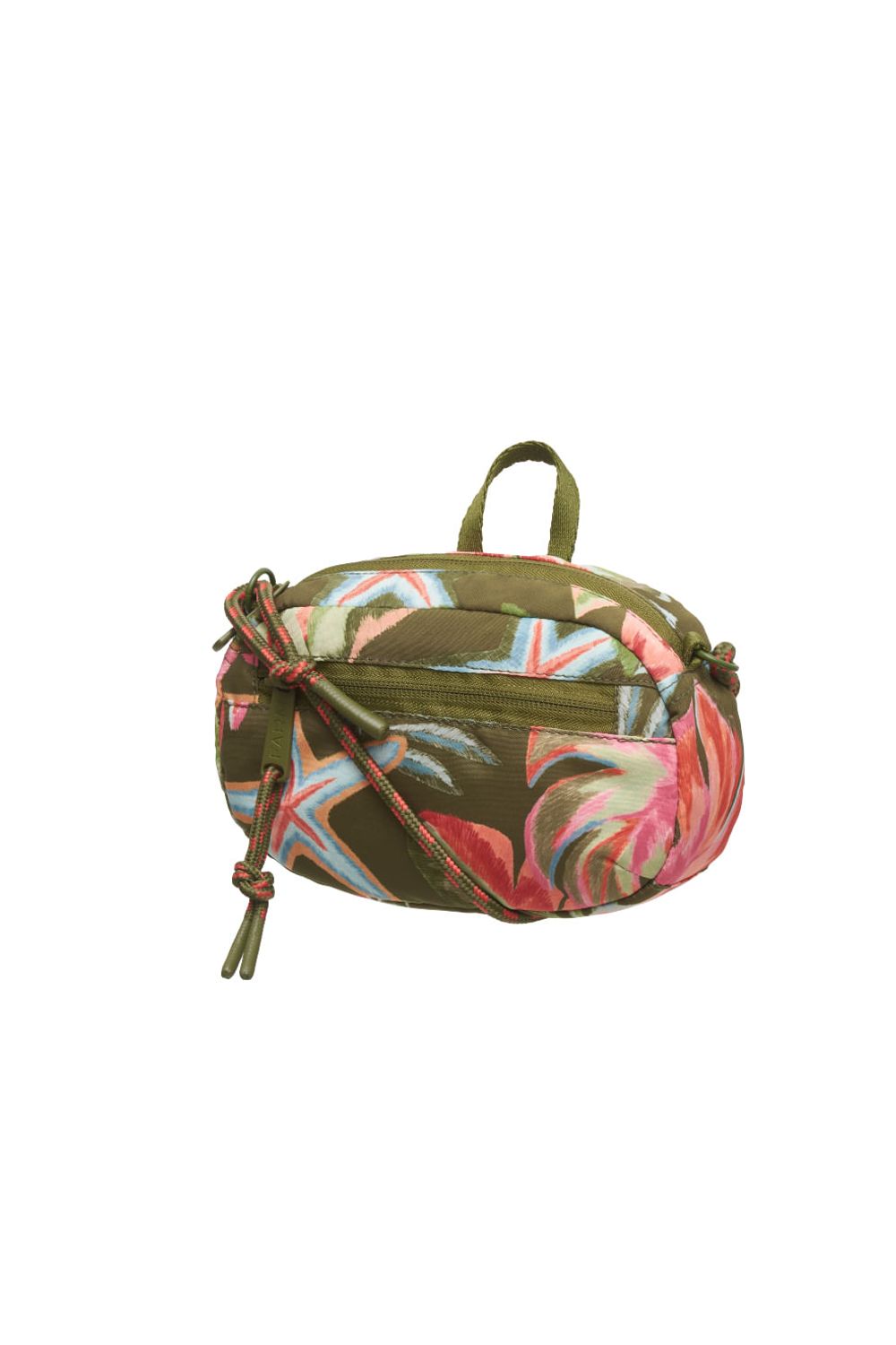 Bolsa transversal estampada confeccionada em poliéster, bolso frontal, alça removível em corda com ponta emborrachada, passantes em fita de gorgurão no painel traseiro, puxadores de zíper personalizados em metal colorido com logo em baixo relevo e corda com ponta emborrachada e etiqueta emborrachada costurada.-