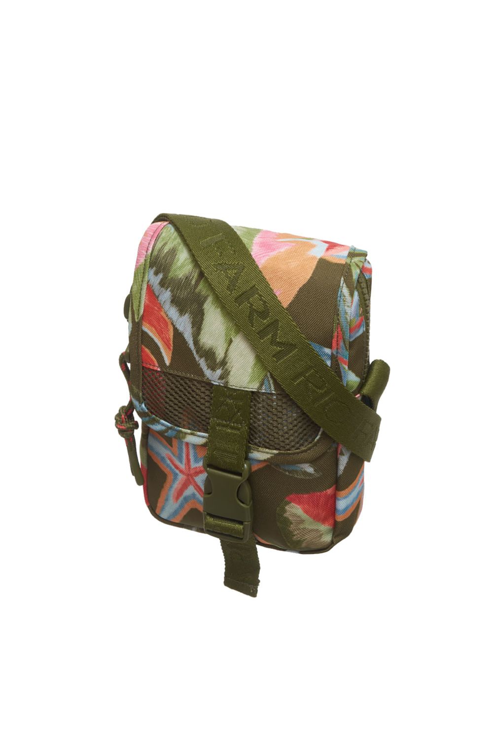 Bolsa transversal estampada confeccionada em poliéster, tampa com fivela plástica, alça ajustável personalizada, bolso no painel traseiro, puxadores de zíper personalizados em metal colorido com logo em baixo relevo e corda com ponta emborrachada e etiqueta emborrachada costurada.-