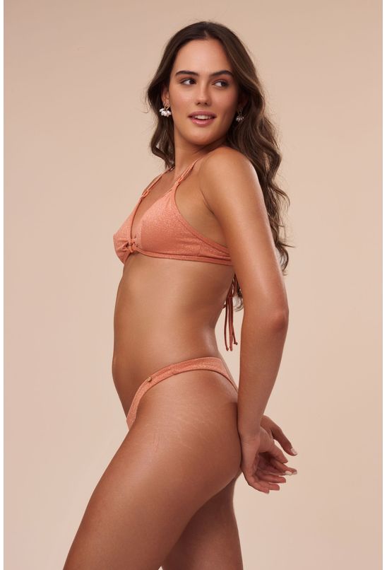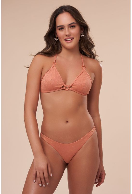 Bottom midi de modelagem clássica. Possui laterais de 2cm e uma cobertura média do bumbum. Muito confortável, é ideal para todos os tipos de quadril. A lycra na cor papaya possui fios prateados de lurex que deixam a peça com um brilho suave.-