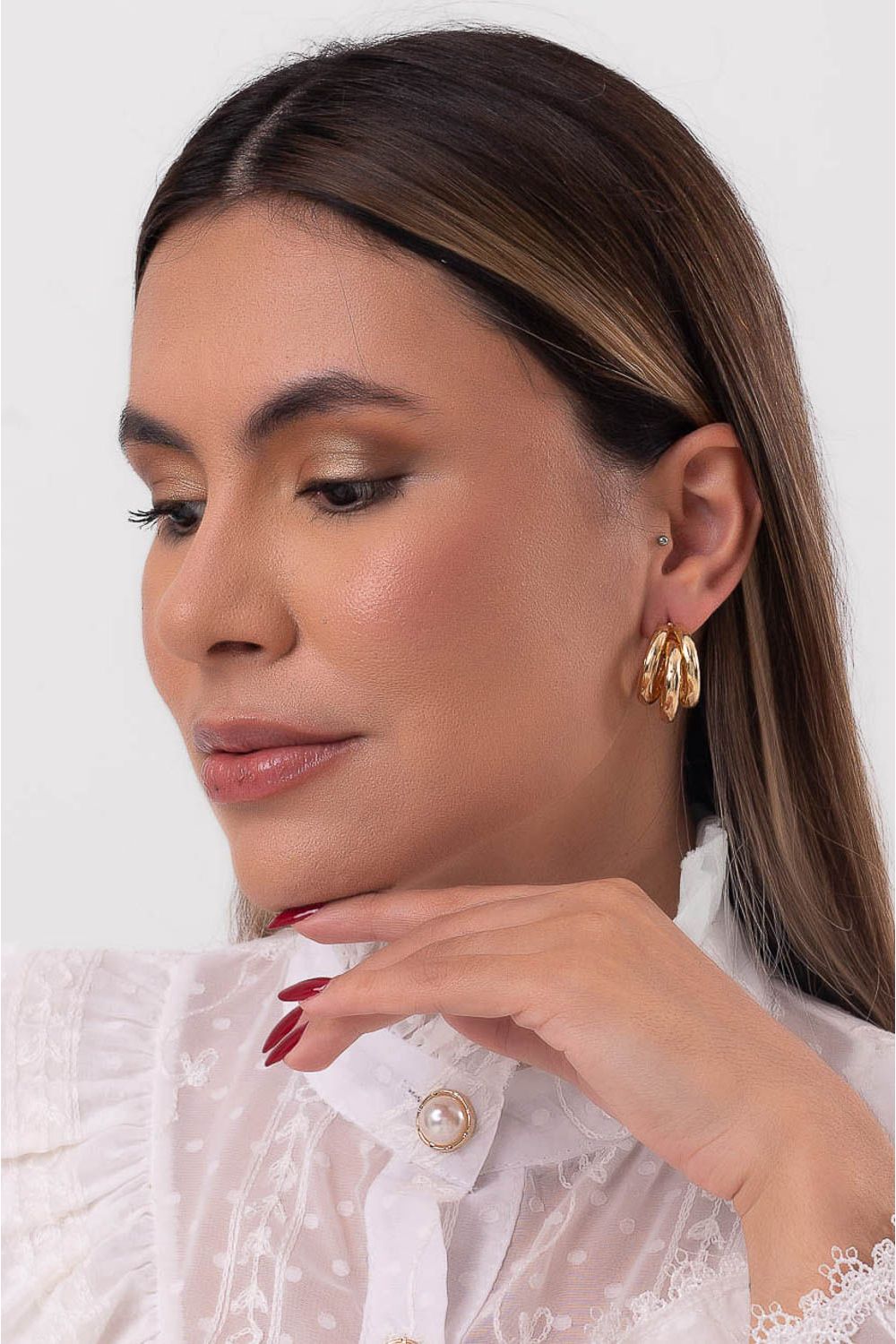 Brinco de argola tripla dourado labrava-