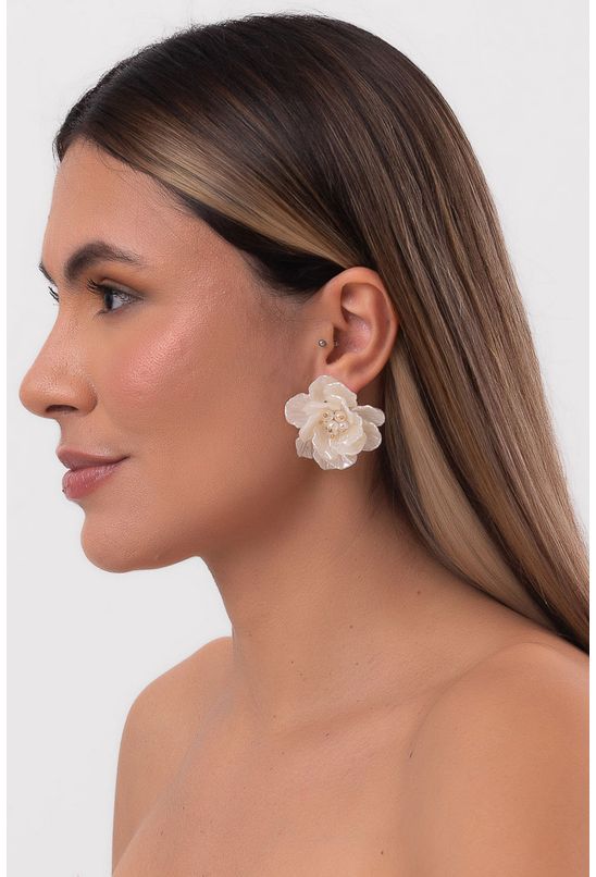 Brinco flor branco labrava - U