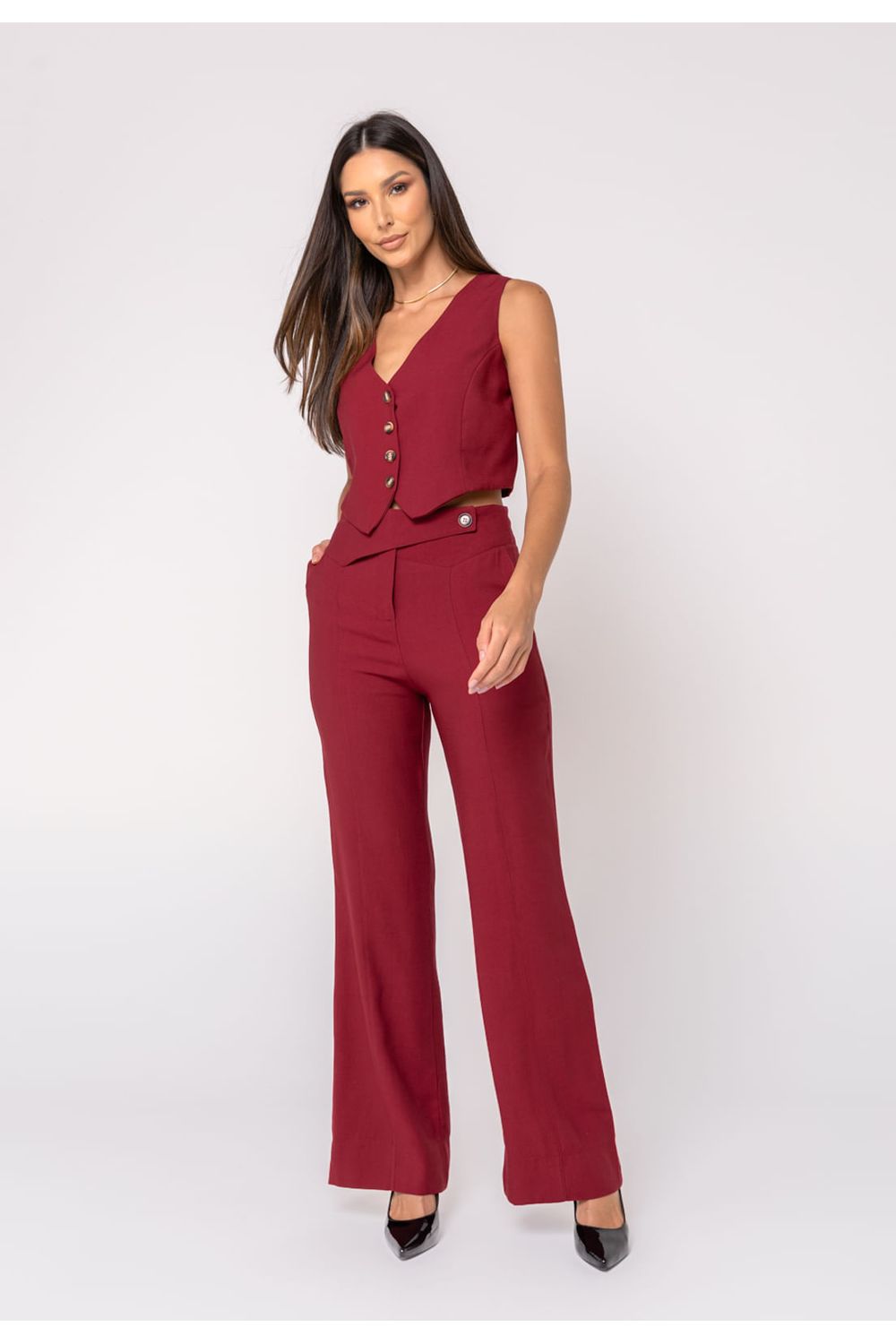 Calça Alfaiataria com Cós Assimétrico Vinho Salvatore