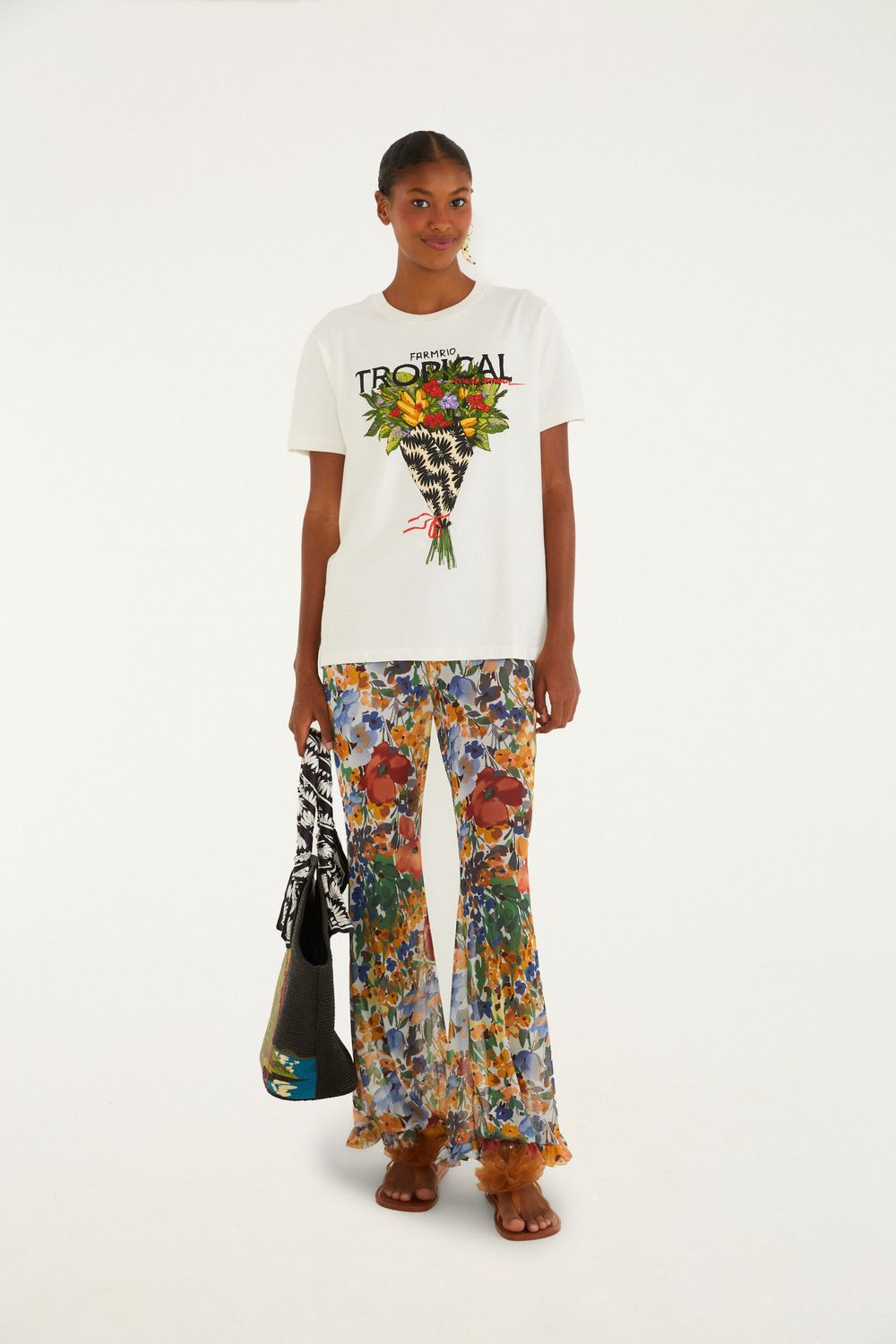 - Descrição e Infoscalça babado tule estampada camponesa. traz babados delicados na barra em modelagem fluida, destaque para a cintura alta e caimento leve. com aplicação em tule, agrega movimento e charme ao look. perfeita para ocasiões casuais ou eventos ao ar livre. uma peça que transita entre o casual e o sofisticado. FARM RIO original - verão 26.