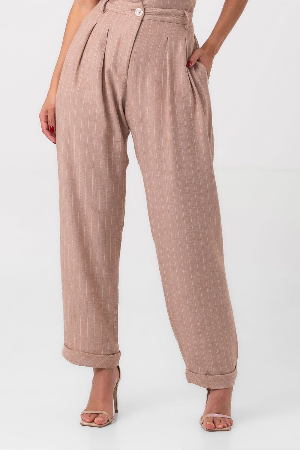Calça cintura alta listras verano bege labrava