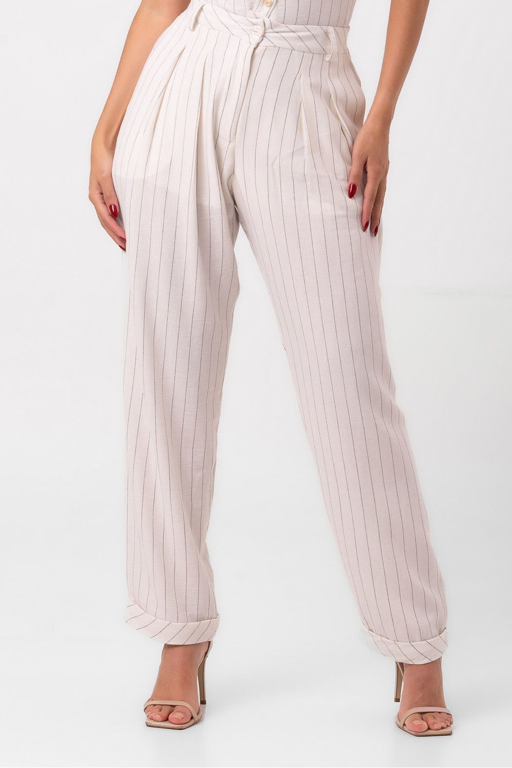 Calça cintura alta listras verano off white labrava