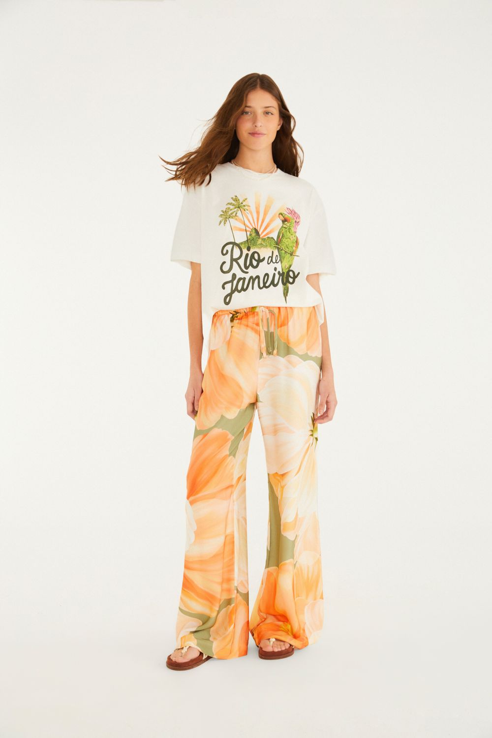 calça amarilis. modelagem ampla e fluida que traz um toque de liberdade ao seu visual. cintura alta com ajuste em cordão garante conforto e praticidade. versátil para encontros casuais ou momentos especiais. eleva seus dias com estilo sem esforço. FARM Rio, coleção Carioca - inverno 26.-