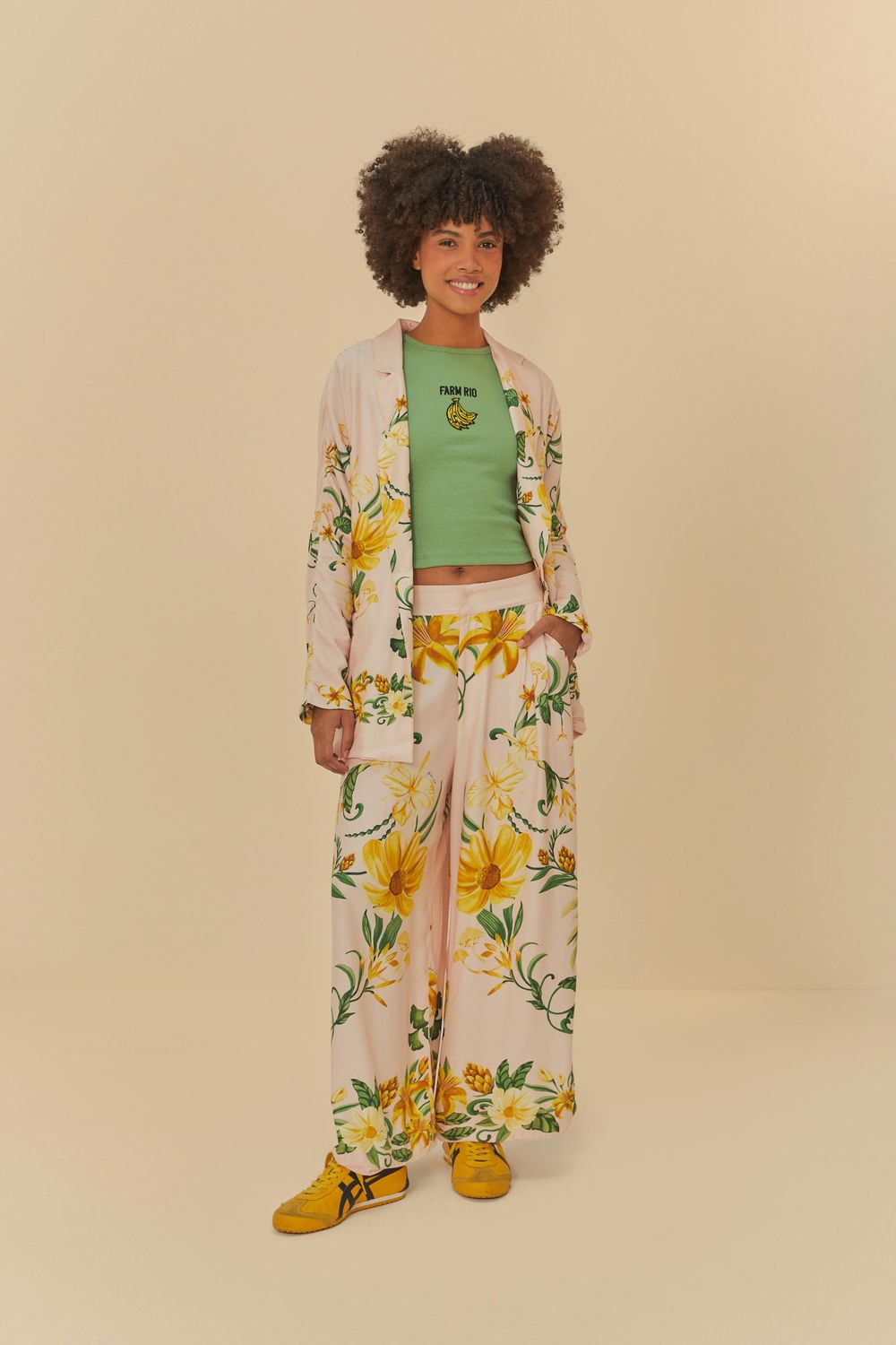 calça estampada beleza de abacaxi é perfeita para trazer frescor e alegria ao seu guarda-roupa. o corte amplo proporciona conforto e leveza, ideal para dias ensolarados. o tecido macio e fluido traz uma sensação agradável ao vestir, enquanto a cintura ajustável garante versatilidade. uma escolha perfeita para um passeio à beira-mar ou um encontro casual. FARM RIO original - inverno 25.-