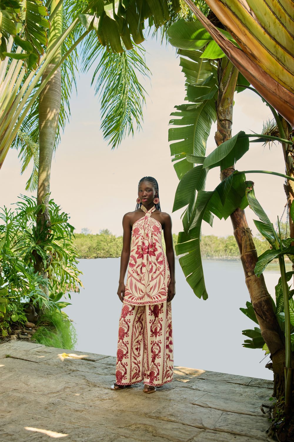 calça estampada nina oferece modelagem ampla e leve, perfeita para mergulhar na alma tropical em momentos casuais. suas alças finas e cintura ajustável proporcionam conforto e ajuste ideal. ideal para explorar a cidade ou relaxar à beira-mar. FARM RIO original - verão 26.-