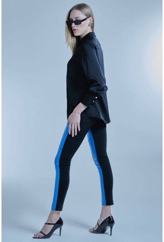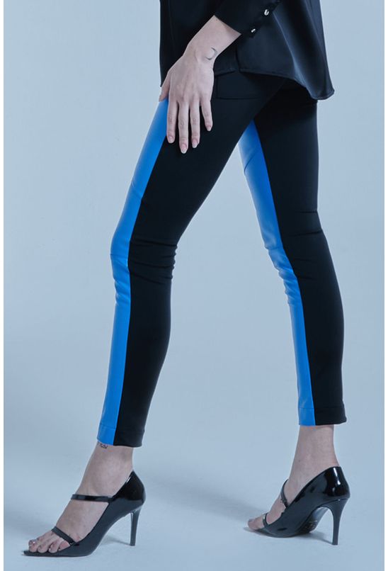 Calça Feminina Couro Pu Collection Bicolor Lisa Smk Azul Médio