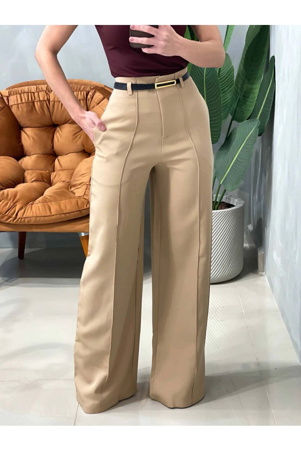 Calça Feminina Pantalona em Alfaiataria com Cinto Natasha Ref. 1013