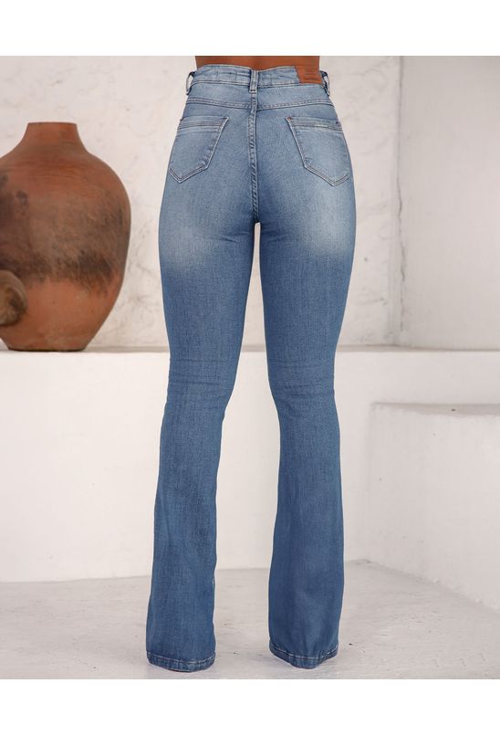 Calça Jeans Flare Feminina Cintura Alta 24914 Sky Médio