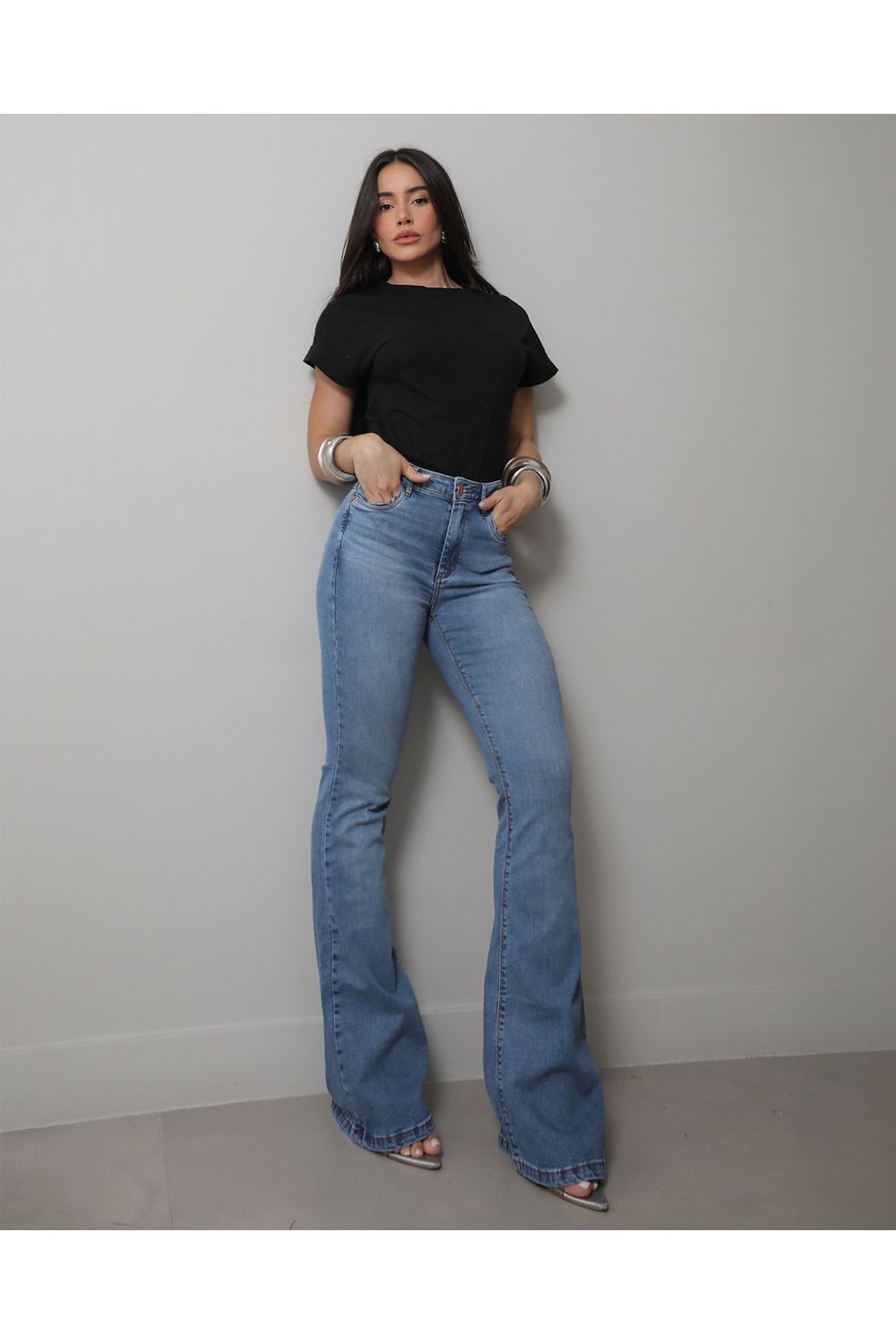 Calça Jeans Flare Feminina Cintura Alta 25067 Sky Médio