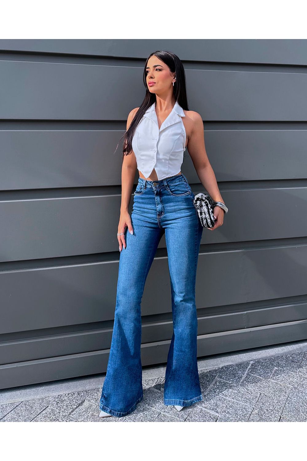 Calça Jeans Flare Feminina Cintura Alta 25150 Sky Escuro