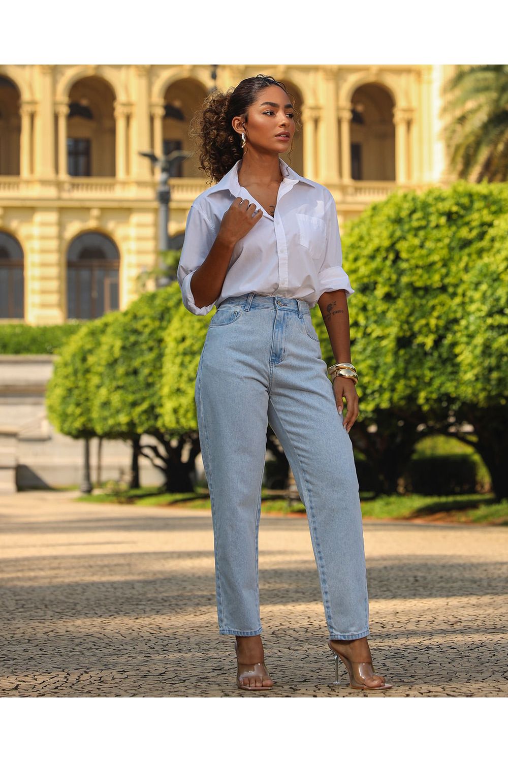 Calça Jeans Mom Feminina Cintura Alta 101vibes Algodão 00101 Sky Claro