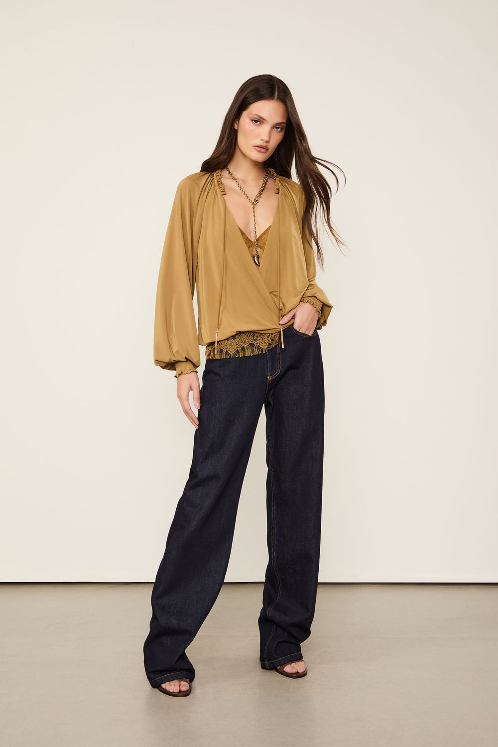 - Passantes na cintura alta;