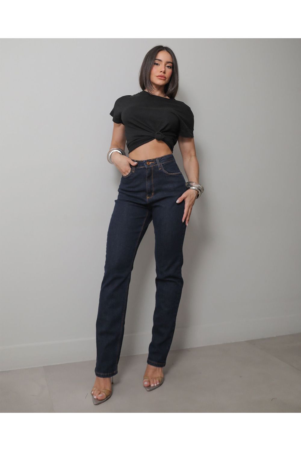 Calça Jeans Reta Feminina Cintura Alta com Elastano 24000 Amaciado