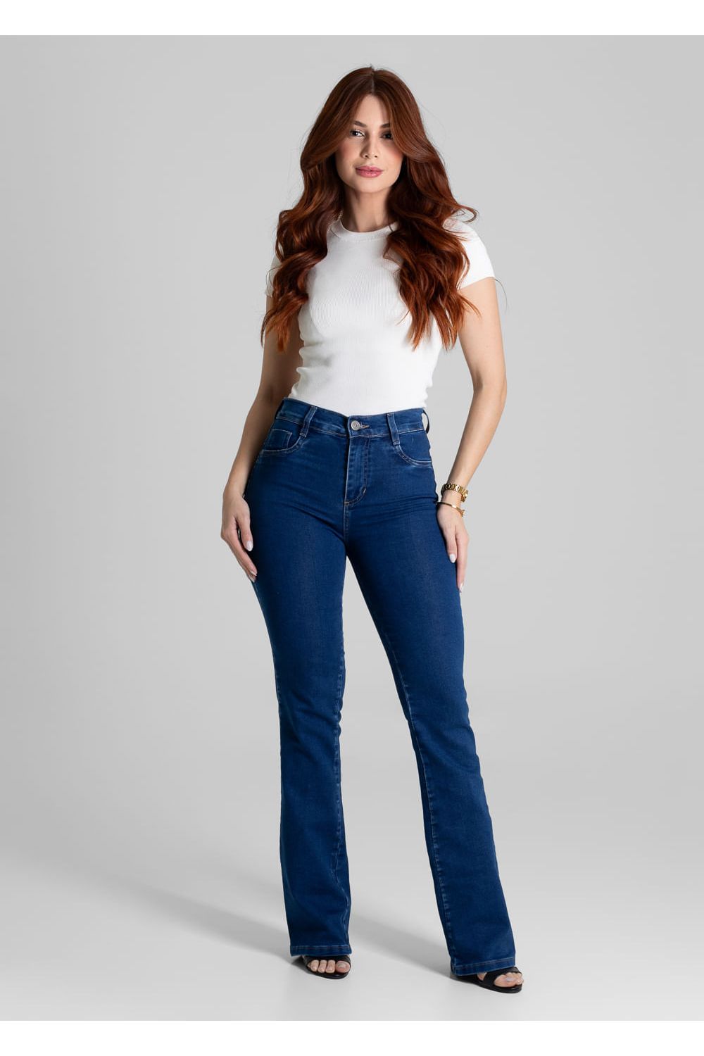 A modelagem boot cut tem o caimento ajustado nas pernas e levemente ampla barra. Cintura media Fechamento com botão e zíper Bolsos frontais falsos e posteriores funcionais Barra simples Modelagem: boot cut Tecido: Jeans Tipo de lavagem: Azul Cor: Azul médio-
