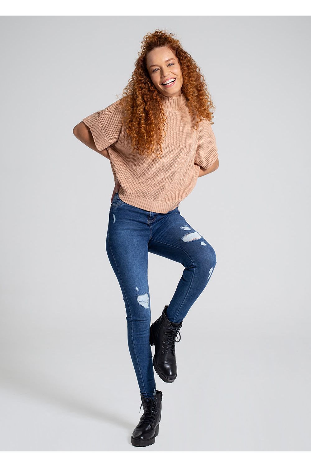 Calça push up com rasgos confeccionada em jeans. A modelagem tem tecnologia para dar um UP na silhueta.