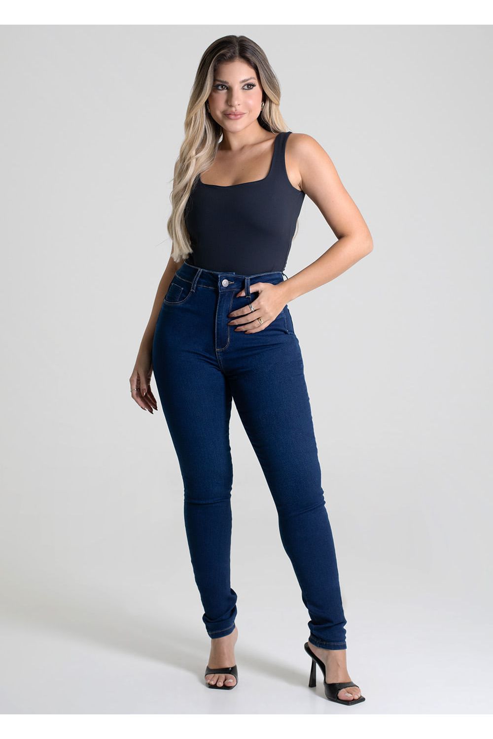 Calça super lipo confeccionada em jeans. A modelagem possui uma cinta proporcionando ajuste perfeito para o seu corpo Cintura alta Fechamento com botão e zíper Bolsos frontais falsos e bolsos traseiros funcionais Barra acabamento simples Modelagem: Super lipo Tecido: Jeans Tipo de lavagem: Azul Cor: Azul médio-
