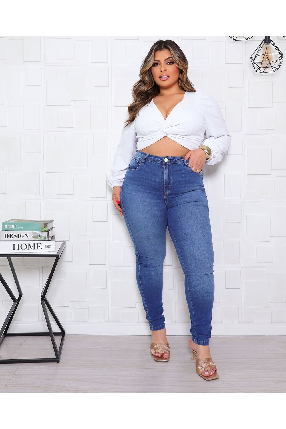 Calça Jeans Skinny Feminina Cintura Intermediária Plus Size 25133 Sky Escuro