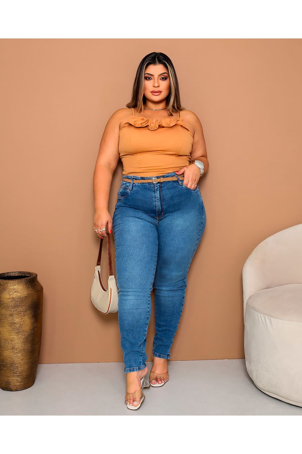 Calça Jeans Skinny Hot Feminina Plus Cintura Alta 24494 Sky Médio