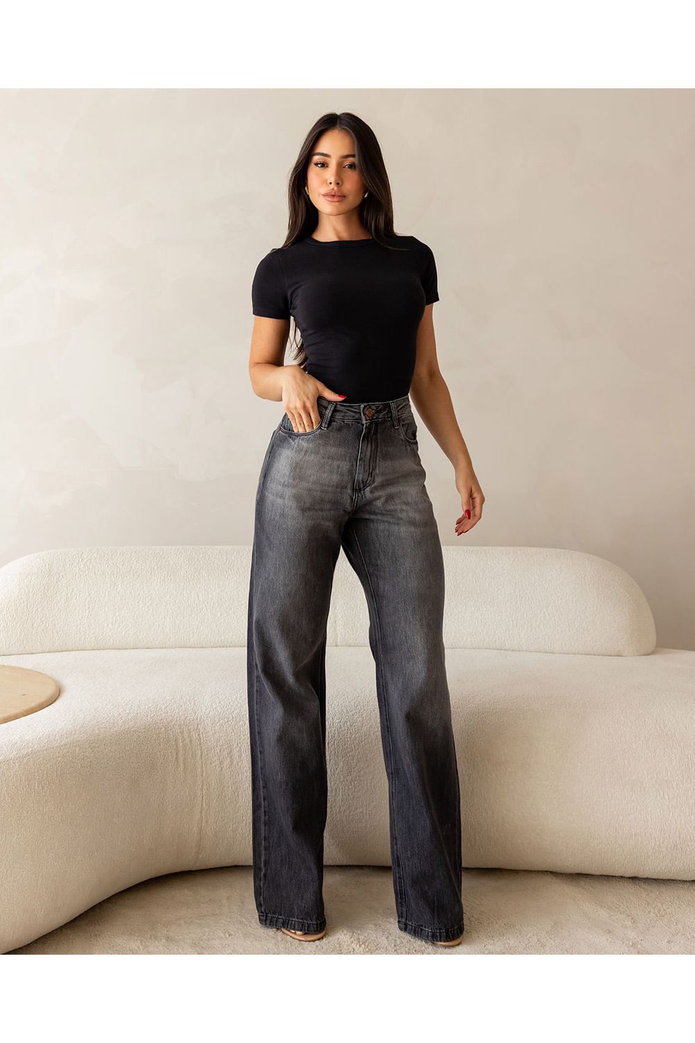 Calça Jeans Wide Leg Feminina Cintura Alta 25116 Vintage