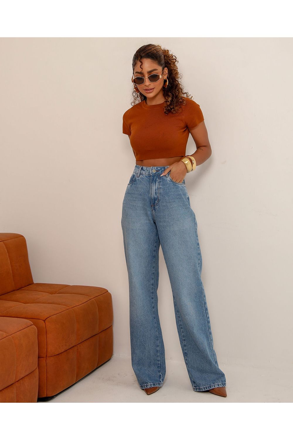 Calça Jeans Wide Leg Feminina Cintura Alta Básica Algodão 29000 Sky com Used
