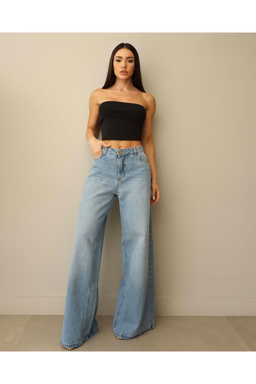 Calça Jeans Wide Leg Feminina Relaxed Cintura Baixa 29909 Clara