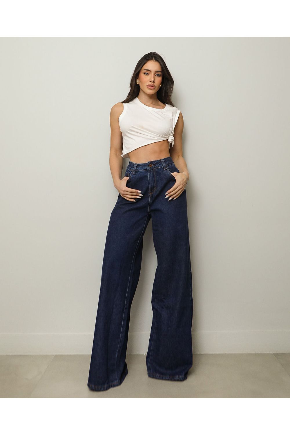 Calça Jeans Wide Leg Feminina Relaxed Cintura Baixa 29909 Escura