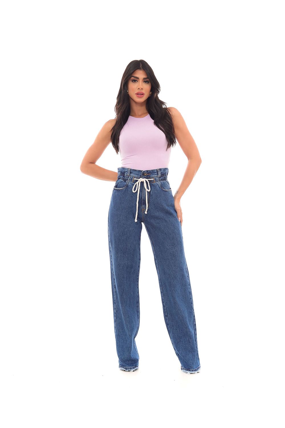 Calça Jeans Wide Leg Rope Feminina Cintura Alta 23098 Escura