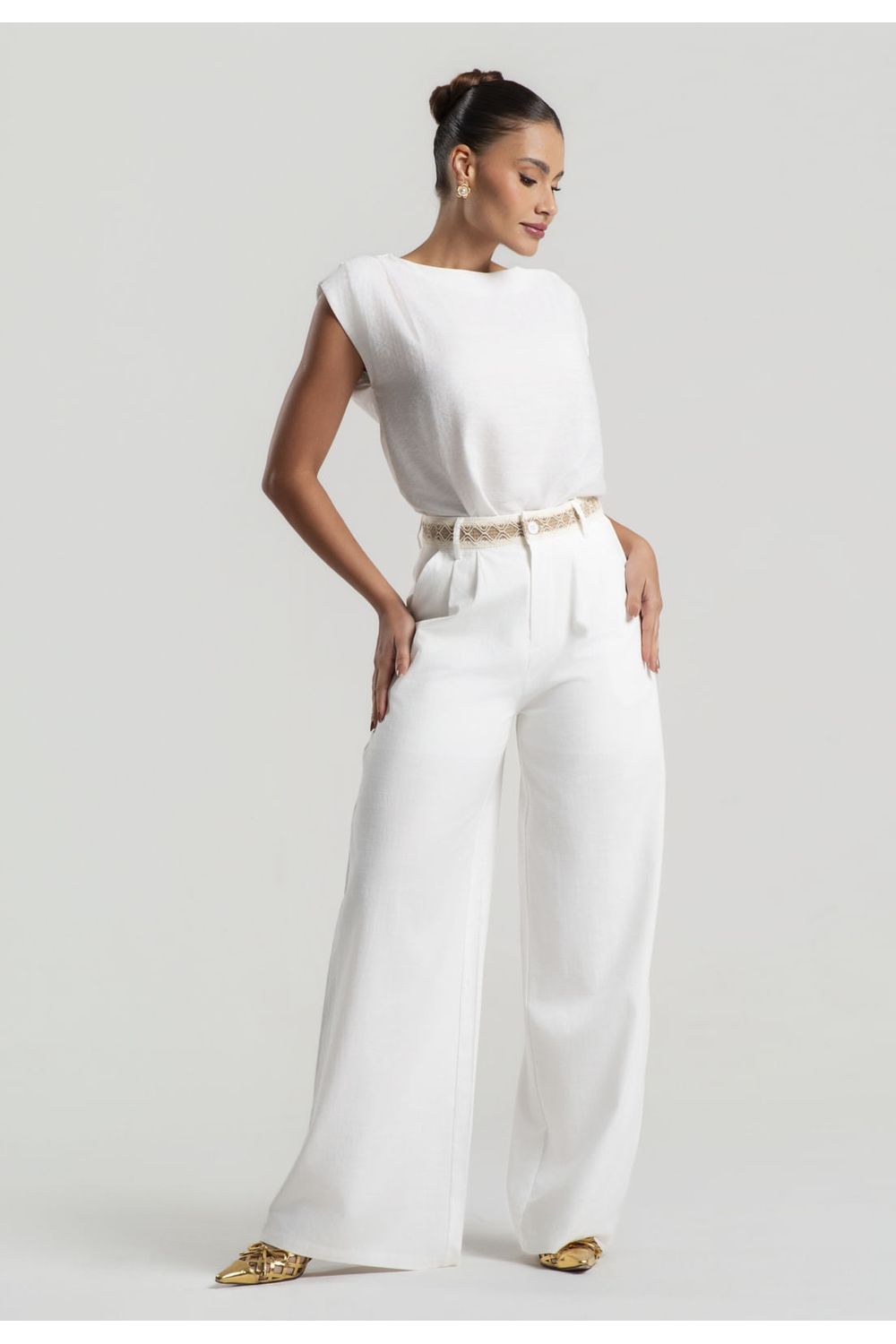 Confeccionada em tecido leve, respirável e estruturado, essa pantalona é ideal para os dias mais quentes, sem abrir mão do estilo.