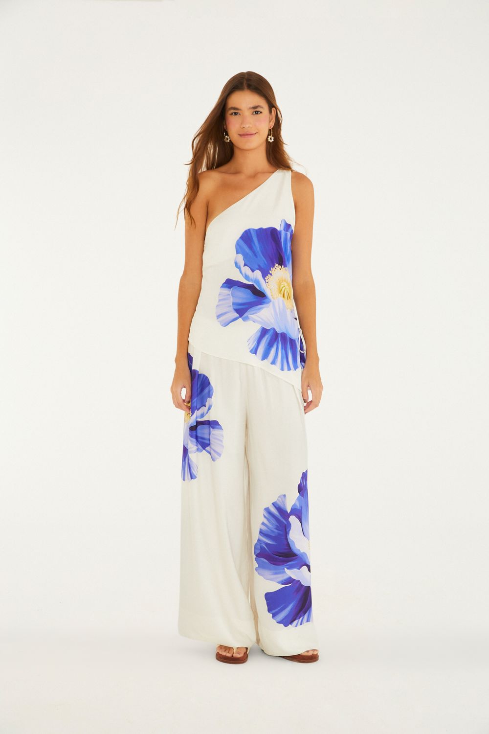 calça pantalona lola une conforto e estilo em uma peça única. com modelagem ampla e caimento fluido, traz cintura com cordão ajustável para um toque casual e sofisticado. a peça é perfeita para um passeio tranquilo ou um evento especial. FARM Rio, coleção Carioca - inverno 26.-