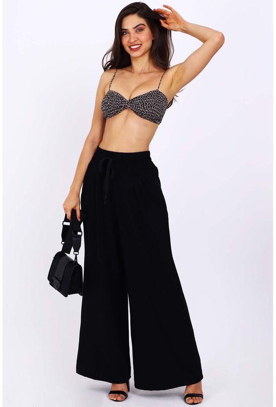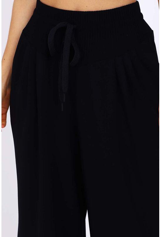 Calça farm lisa, modelo pantalona, cor preta, tecido elastano e moletom e viscose. *as peças podem variar de estampa e tonalidade.