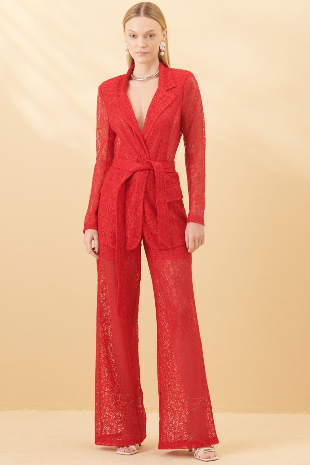 Calça Pantalona Renda Pirâmide Smk Vermelho Medio
