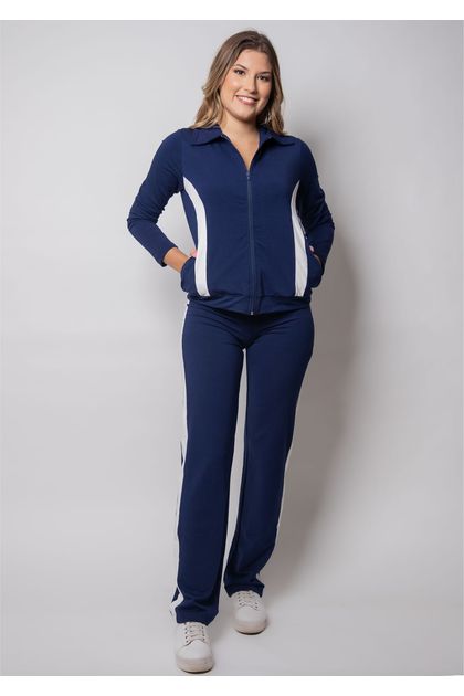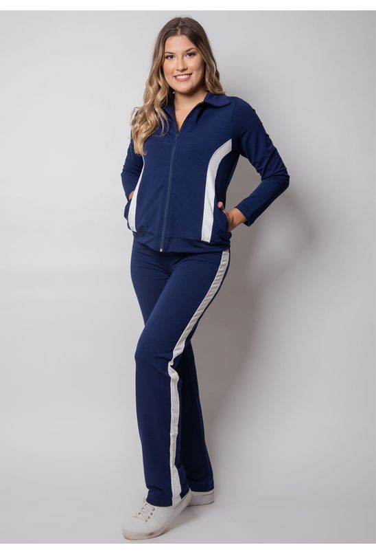 Calça sem estampa, na cor Marinho, com cintura média-alta.