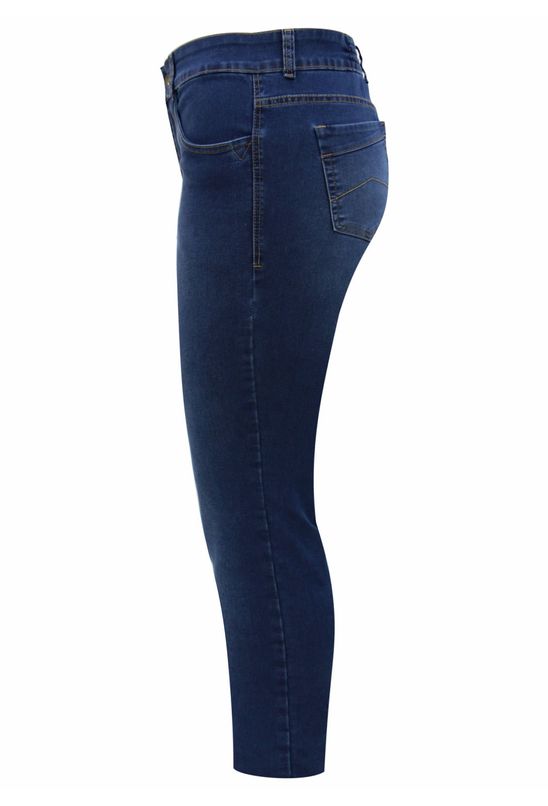 Calça com cintura alta, em Jeans com elastano.