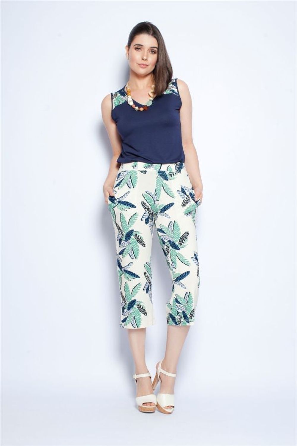 Calça Pantacourt estampada, sobre o fundo Off White.