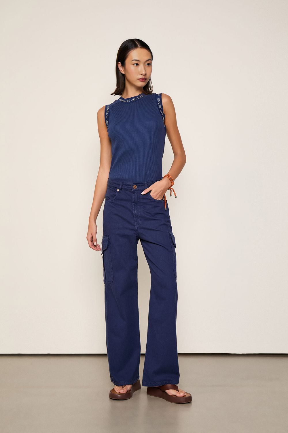 Calça Sarja Cintura No Lugar Utilitário