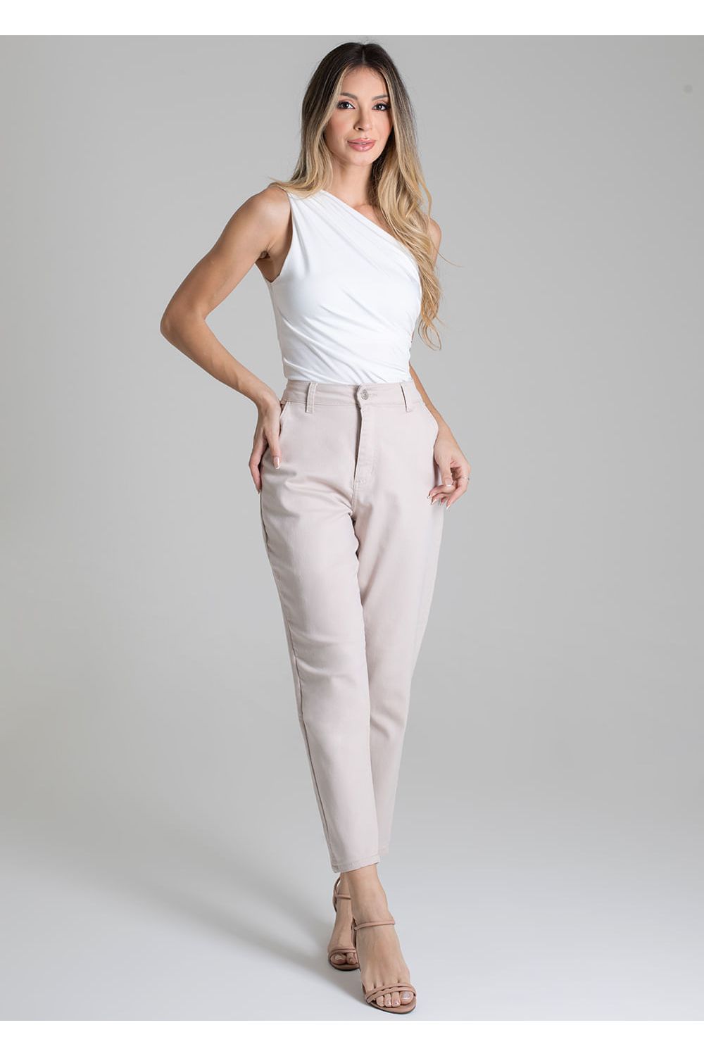 Calça mom confeccionada em sarja. A modelagem mom tem um caimento soltinho nos quadris e coxas ajustando até o tornozelo. Cintura alta Fechamento com botão e zíper Bolsos frontais e bolsos traseiros funcionais Barra simples Modelagem: Mom Tecido: Sarja Tipo de lavagem: Color Cor: bege-