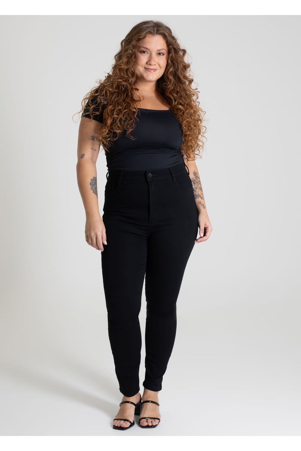 Calça plus size wide leg, confeccionada em sarja. O modelo possui cintura super alta, gancho no lugar e caimento amplo da coxa até a barra. Cintura alta Fechamento através de um botão e zíper Bolsos frontais e posteriores funcionais Barra simples Tecido: Sarja Tipo de Lavagem: Color Cor: Preto-