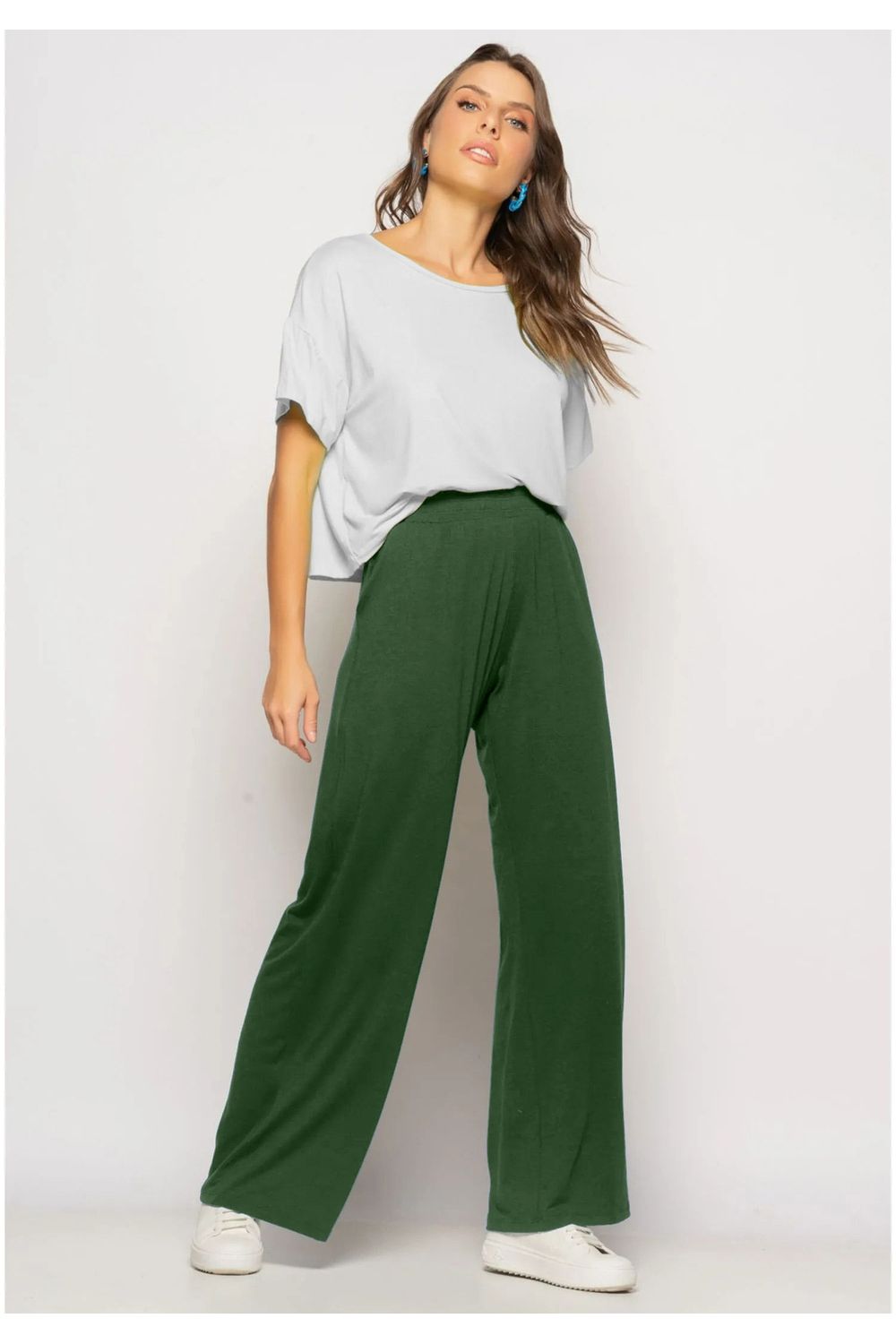 Calça Wide Leg Com Bolso Malha Musgo Salvatore Fashion