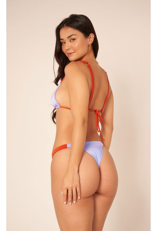 Calcinha mini com menor cobertura no bumbum e laterais trabalhadas em matelassê. O contraste das cores deixa o conjunto mais vibrante e solar.-