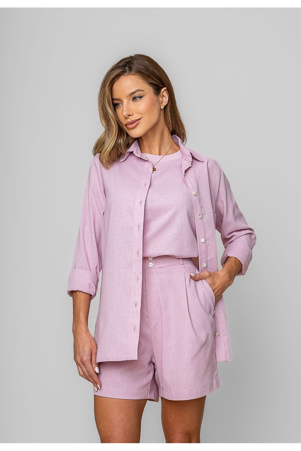 Camisa Alfaiataria Linho M/L Com Bolso Rosa Salvatore