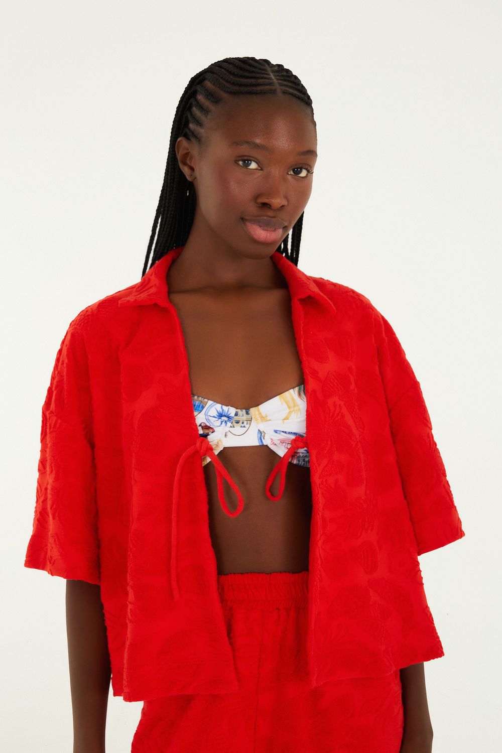 camisa atoalhada. com corte solto e caimento leve, possui colarinho clássico e fechamento em botões, oferecendo um toque casual ao visual. as mangas amplas complementam o modelo, elevando seu estilo em ocasiões relaxantes ou momentos na praia. FARM RIO original - verão 26.-