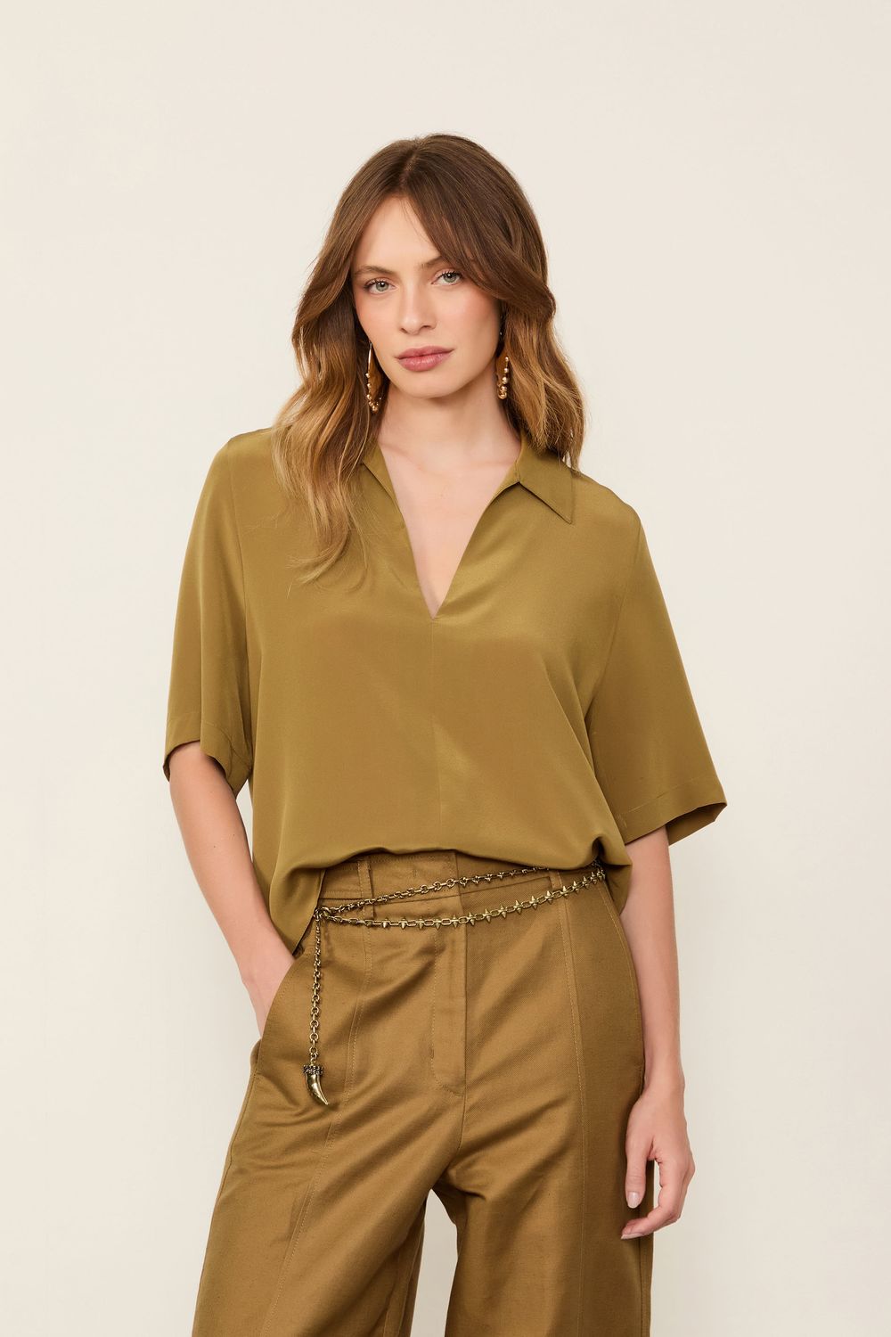 - Decote em V;