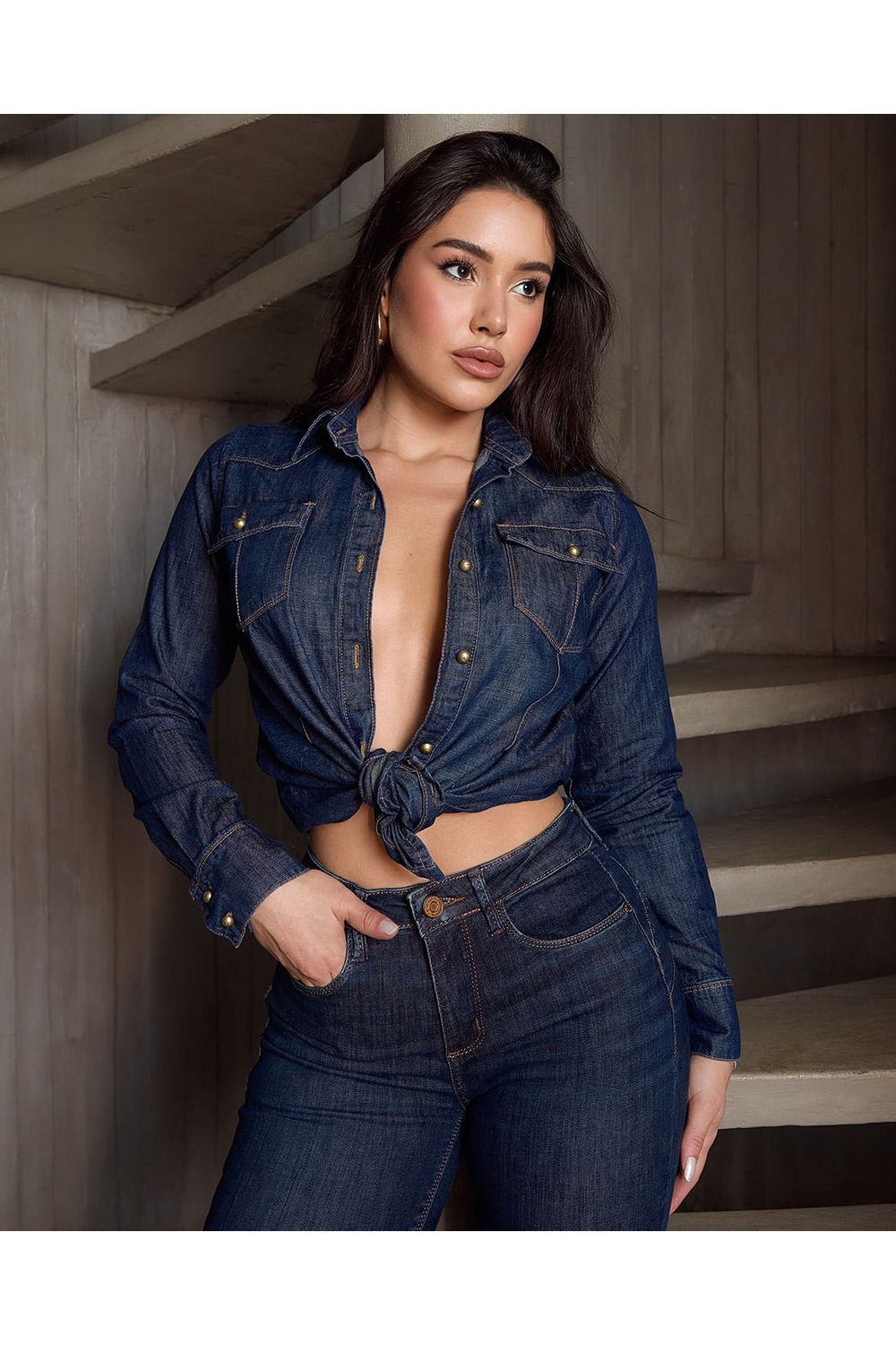 Camisa Jeans Feminina Básica 23812 Amaciado