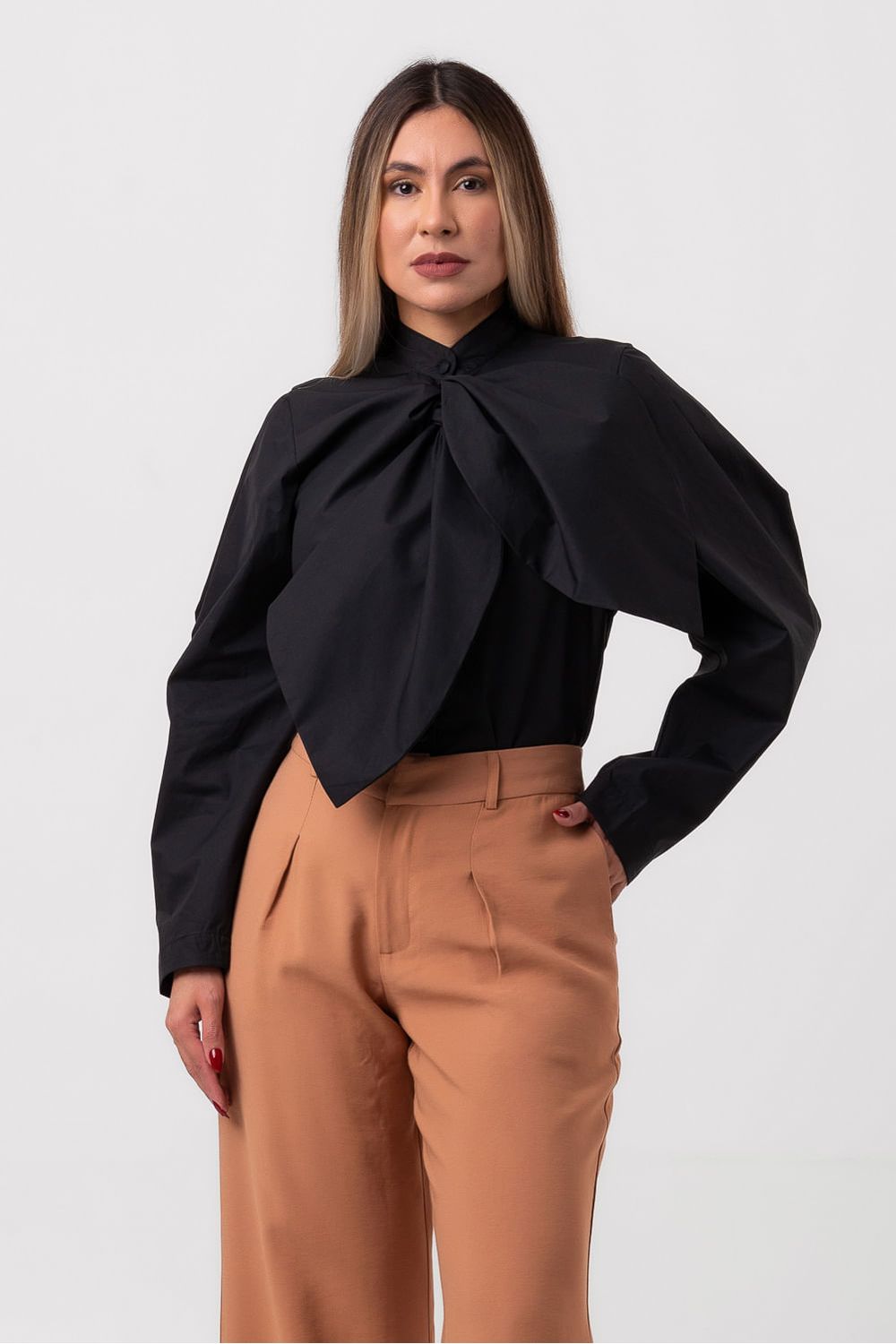 Camisa laço manga longa preta labrava-