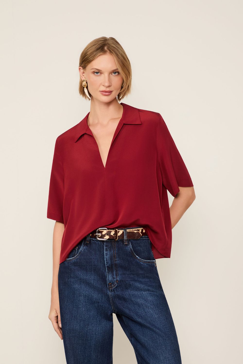 Camisa Polo De Seda Vermelho Wing Manga Curta