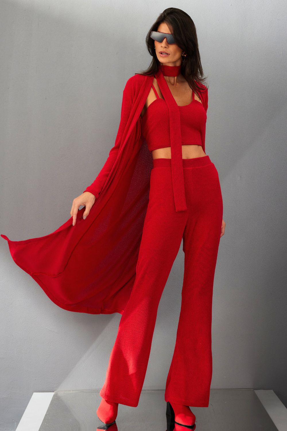 Cardigan Longo em Malha SMKO Cardigan em malha é a peça perfeita para adicionar um toque de conforto e sofisticação ao seu guarda-roupa.