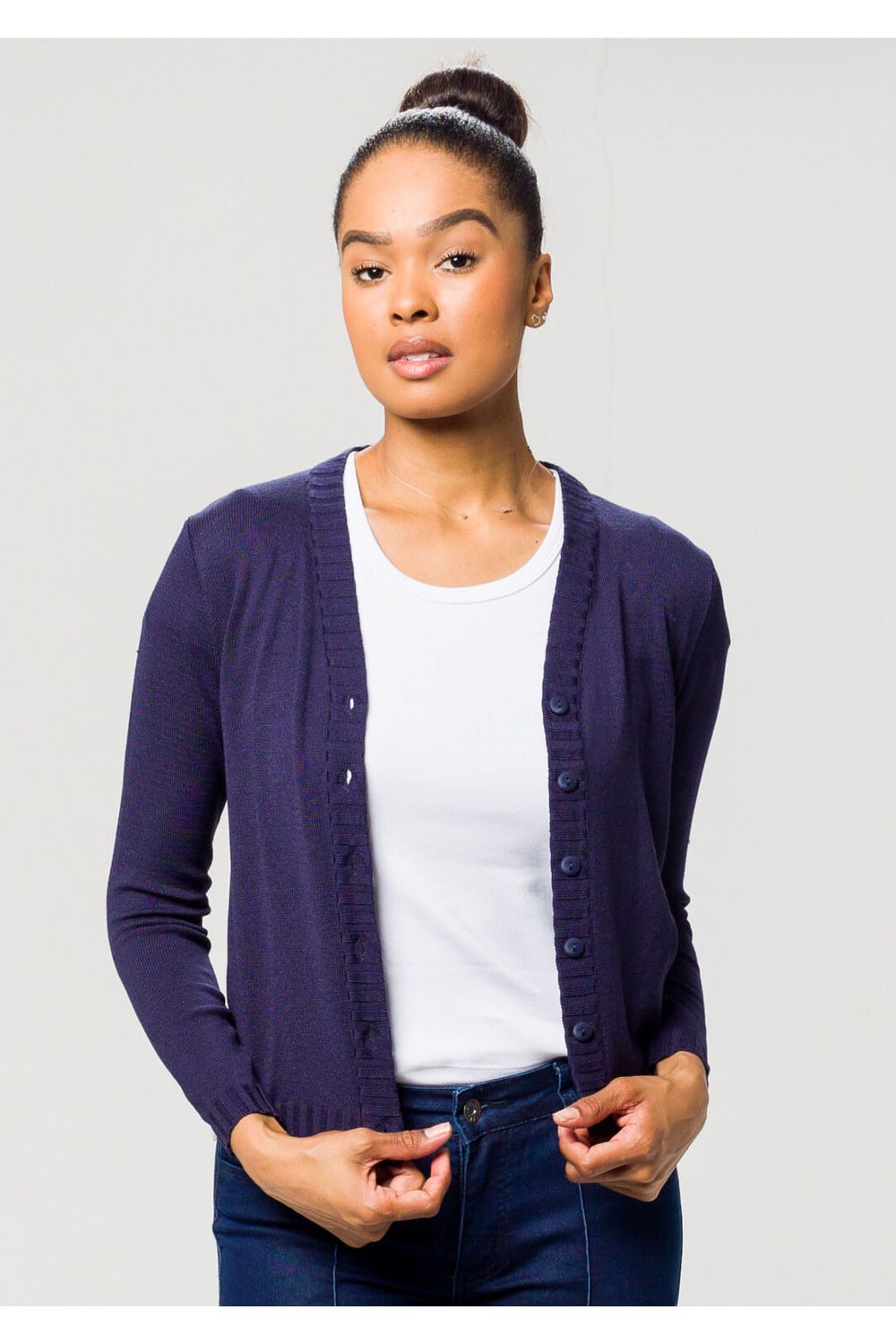 Casaquinho em modal na cor Azul Marinho com mangas longas.